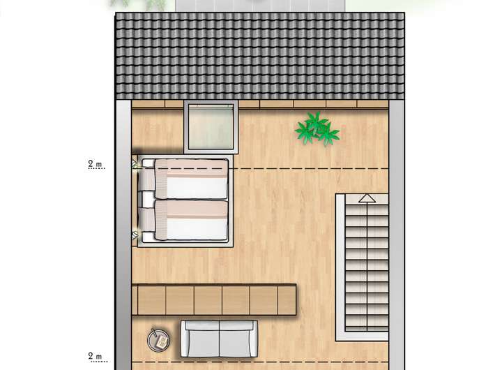 Im Dachgeschoss befindet sich ein weiterer großzügig, lichtdurchfluteter und voll zu Wohnzwecken ausgebauter Raum.