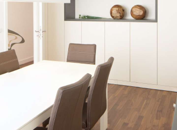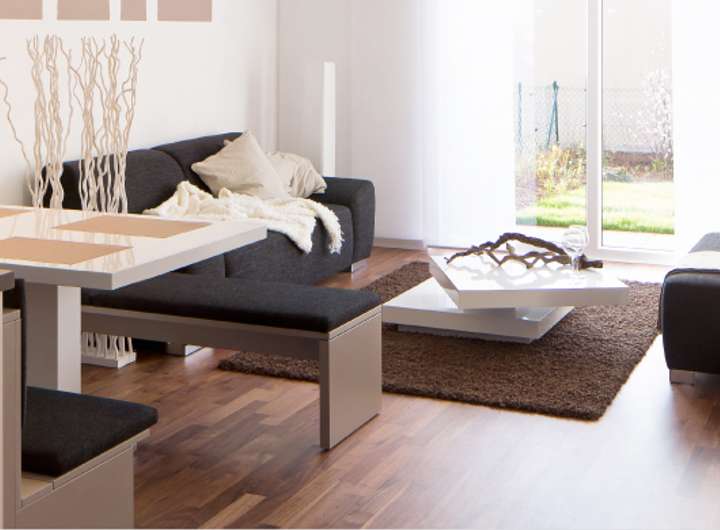 Das Wohnzimmers und die Schlafzimmer sind mit einem hochwertigen Parkett ausgestattet.
