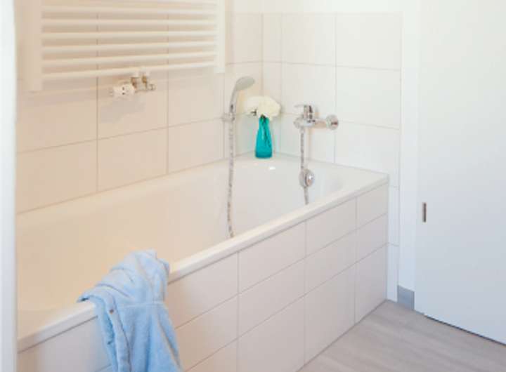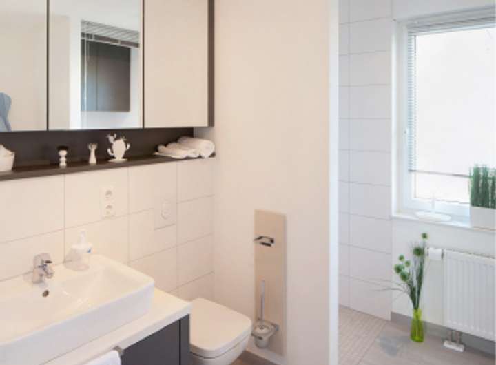 Für Ihre Waschmaschine wurde im Badezimmer eine Nische eingebaut.