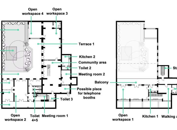 Ca. 650 m² Gesamtfläche auf mehreren Ebenen.