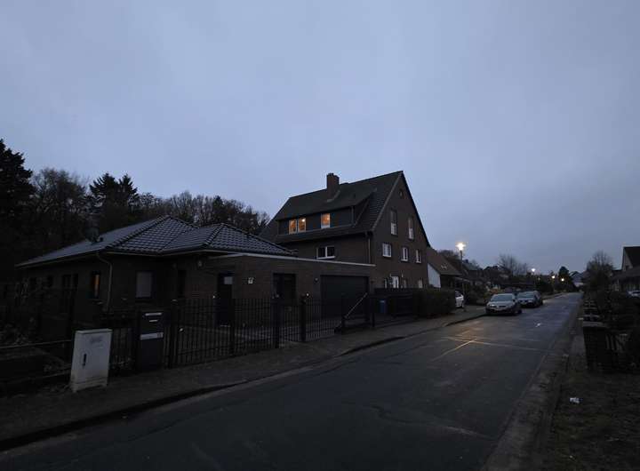 Trotz der sehr guten Infrastruktur liegt das Grundstück in einer ruhigen Wohnstraße ohne Durchgangsverkehr. Die direkte Waldgrenze schafft ein außergewöhnlich hohes Maß an Privatsphäre und Naturverbundenheit. Spazierwege, Freizeitmöglichkeiten und Erholungsflächen beginnen praktisch vor der Haustür.