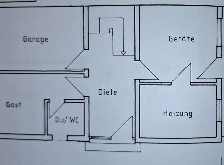 Erdgeschoss: 2 Zimmer, eins davon mit Dusche und WC. Heitzungsraum