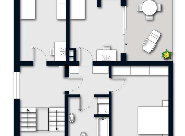 Wohnfläche, sondern darüber hinaus auch eine schöne Loggia und einen überdachten Balkon, deer es Ihnen erlaubt, Ihr Familienleben nicht nur im Sommer unter freien Himmel zu verlegen. Auch im hausinneren genießen Sie durch die vorteilhafte Ausrichtung und die großen Fenster des Hauses viel wärmenden Tageslichteinfall. Im EG erwartet Sie ein Wohn- und Esszimmer mit großer Fensterfront mit angrenzender Loggia und Küche, sowie ein gemütlicher Kaminofen. Über einen behindertengerechten Treppenlift erreiche Sie die anderen Geschosse. Im OG finden Sie einen großen überdachten Balkon, drei gemütliche Schlafzimmer und ein Familienbadezimmer mit Badewanne und Dusche. Sperrigen Hausrat lagern Sie bequem im Keller des Hauses. Ihren Pkw hingegen können Sie sicher in der Tiefgarage abstellen.
