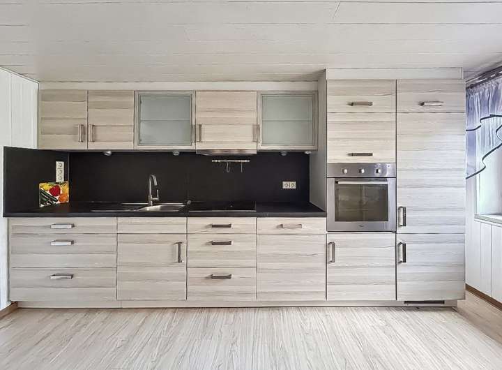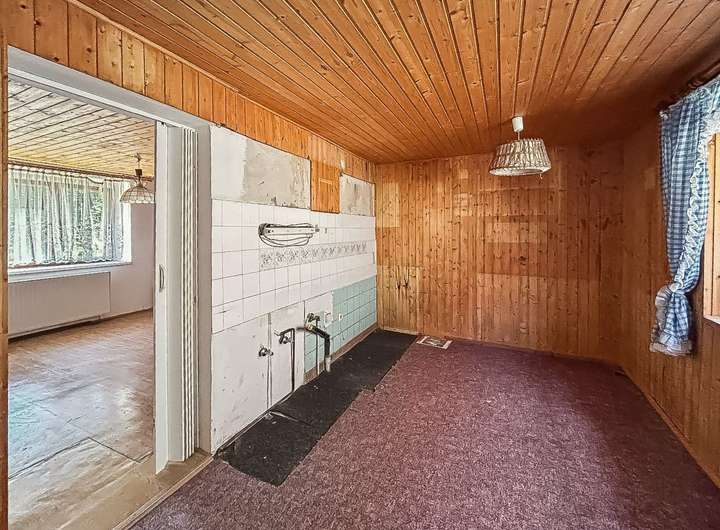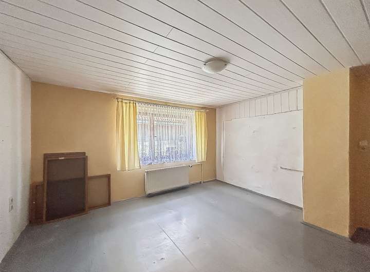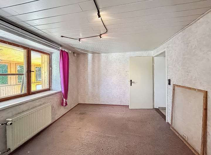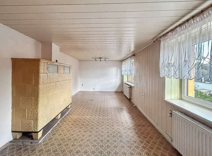 Das Obergeschoss verfügt über ein weiteres Wohnzimmer, eine Küche (Einbauküche aus ca. 2012), ein Badezimmer, ein Schlafzimmer, ein Arbeitszimmer sowie einen Abstellraum. Der vorhandene Kachelofen ist aktuell stillgelegt, kann jedoch mit einem neuen Einsatz wieder in Betrieb genommen werden. Die Fenster im Obergeschoss wurden ca. 1978 erneuert.