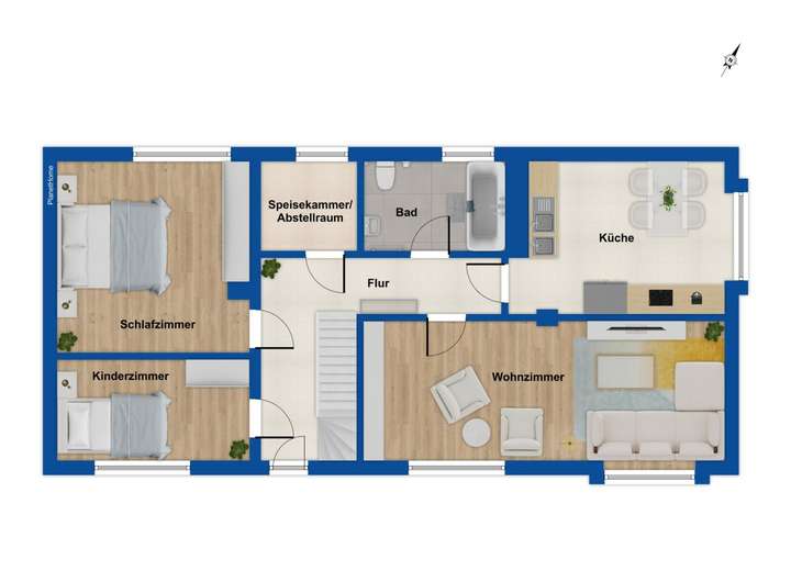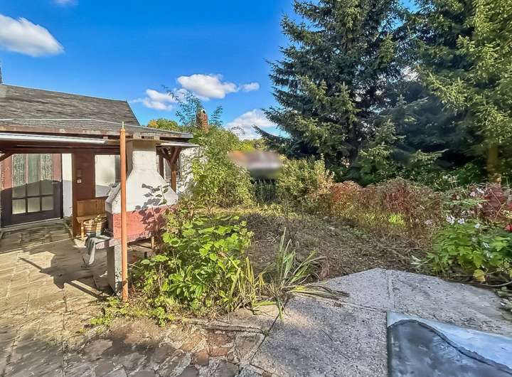 Hinzu kommen Außenflächen wie eine kleine überdachte Terrasse, ein Abstellraum unterhalb des Wintergartens, ein Außenkeller sowie ausreichend Abstellmöglichkeiten.