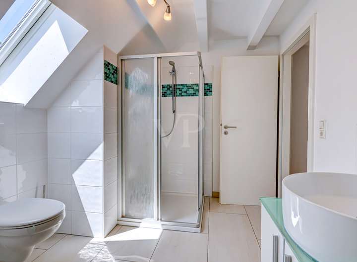Das zweite Obergeschoss bietet zusätzliche Wohnqualität mit drei weiteren Zimmern, die flexibel als Schlaf-, Gäste- oder Arbeitszimmer genutzt werden können – ideal auch für heranwachsende Kinder, Homeoffice oder Hobbys. Ergänzt wird diese Etage durch ein weiteres, großflächiges Tageslichtbad, das ebenfalls geschmackvoll und modern ausgestattet ist.