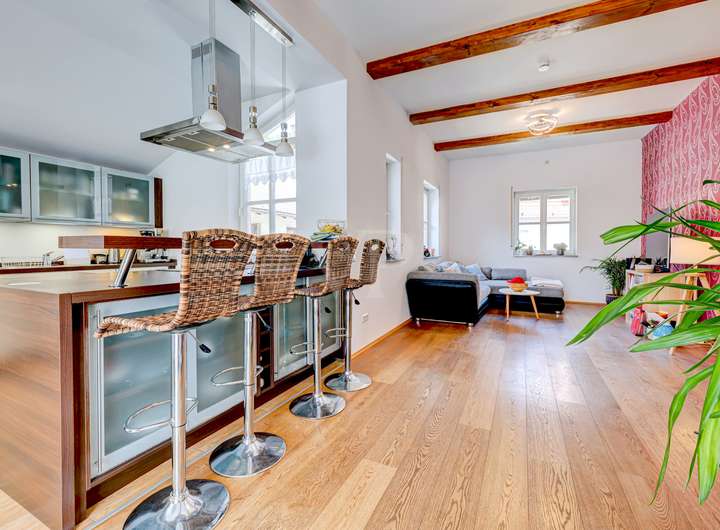– Edler Echtholzparkettboden im gesamten Wohnbereich