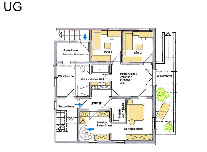 Durch die flexiblen Nutzungsmöglichkeiten (Eigennutzung einer Einheit, Vermietung der anderen zwei Einheiten zur Eigen-Nutzung oder einer Großfamilienlösung, siehe hierzu die Grundrisse der Nutzungsvorschläge) bietet dieses Objekt attraktive Perspektiven für Selbstnutzer und Kapitalanleger gleichermaßen. Die Grundrisskonzepte für einen Umgestaltungs-Vorschlag in eine Gross-Wohnung sind ideal für die Grossfamilie.