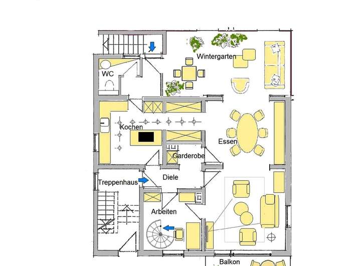 - *Vorschlag für die Nutzung einer Maisonette-Wohnung mit Wintergärten und Balkon*: Wohnen wie im Urlaub!
