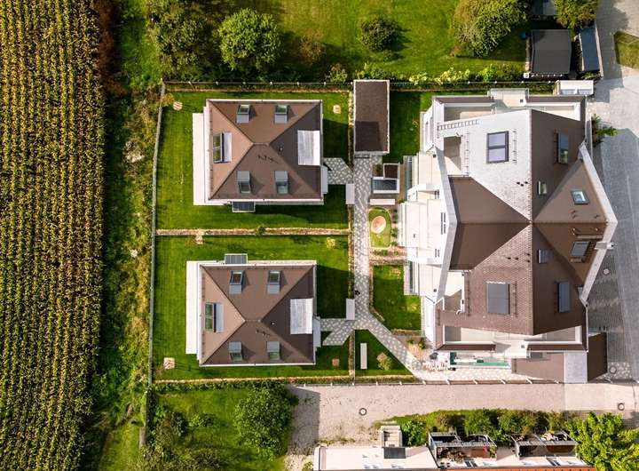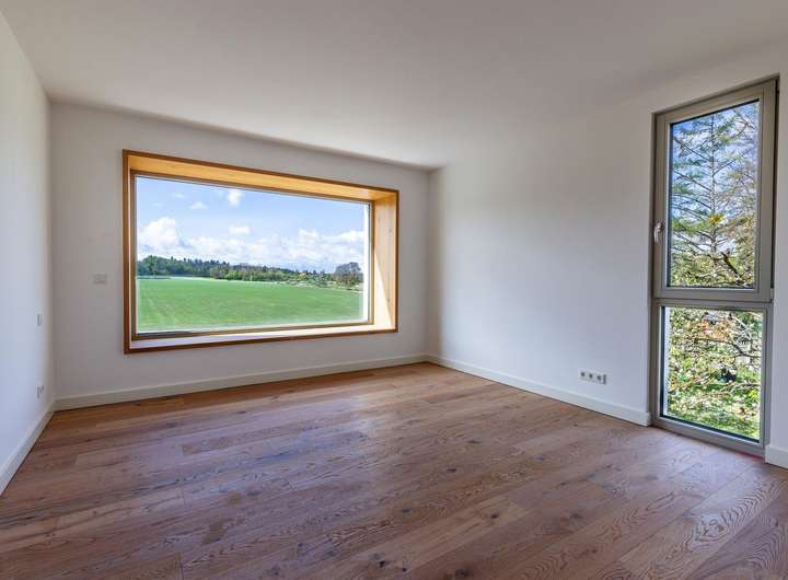 Über die Tiefgarage haben Sie - neben dem Hauseingang im Erdgeschoss, der nur über einen Fußweg erreicht werden kann - einen weiteren, exklusiven Zugang direkt ins Haus. Die Ausrichtung des Hauses konzentriert sich Richtung Süden mit Blick auf ein reizvolles, vielseitiges und vor allem unbebautes Feld. Der Ausblick zum Feld wird im Erdgeschoss durch Panorama-Schiebetüren und im 1.OG durch die Blumenfenster perfekt eingerahmt.