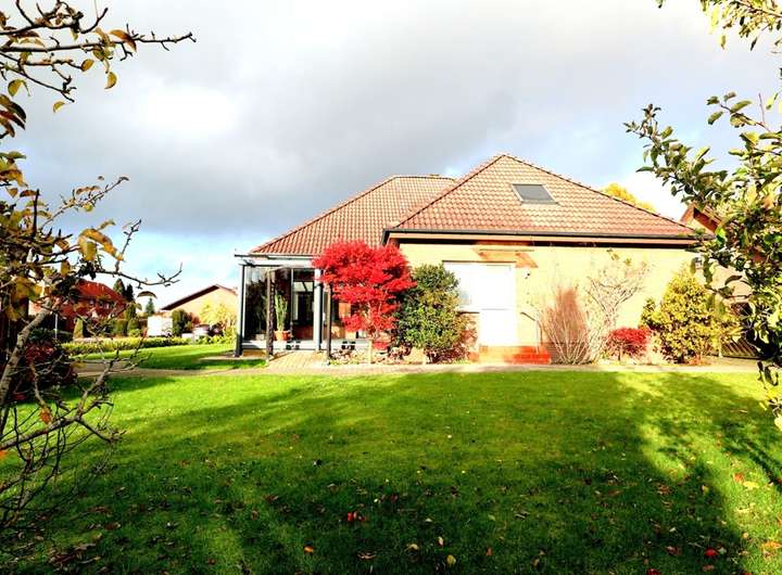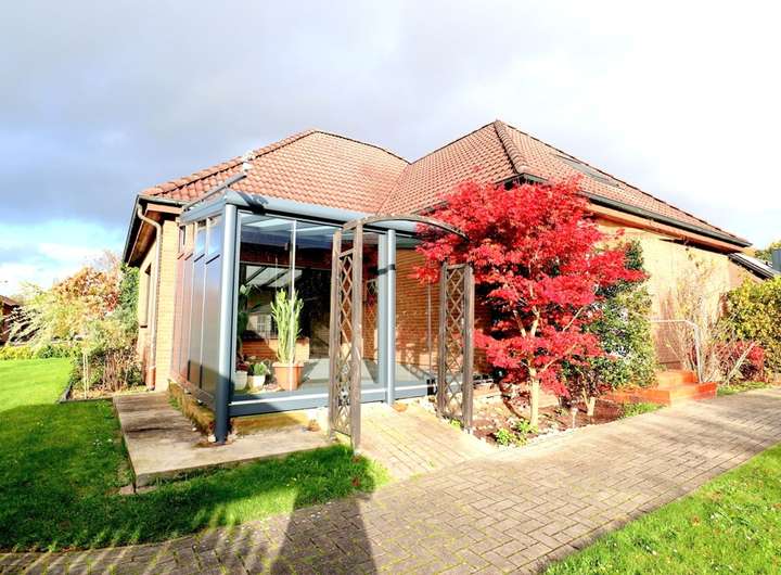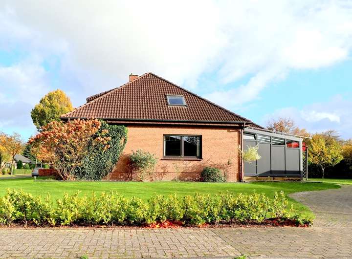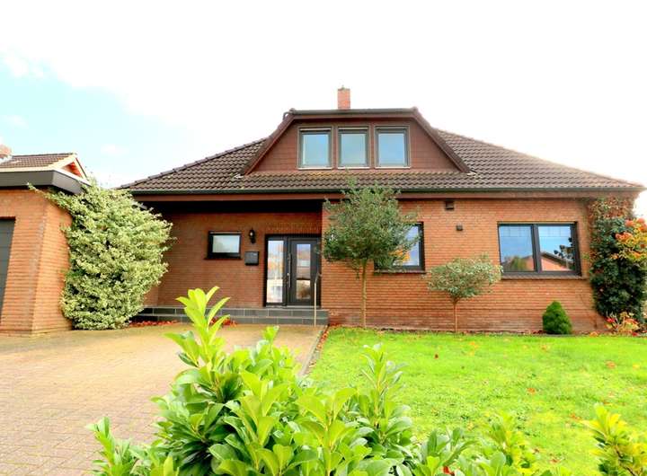 Dieser sehr großzügige Winkelbungalow befindet sich in einer zentralen, Sackgassenlage in Westoverledingen - Ihrhove. Das Wohnhaus mit der Garage wurde 1978 in Massivbauweise errichtet und 1996 um einen Dachausbau erweitert. Die Immobilie hat mit 5 Schlafzimmern und 2 Bädern ausreichend Platz für eine Familie. Ein großes Wohnzimmer, ein angrenzenden Sommergarten, eine Wohnküche und mehrere Abstellräume, die Gästetoilette , sowie zwei Schlafzimmer befinden sich im Erdgeschoss, 3 Schlafzimmer, 1 Abstellraum und ein Bad mit Wanne und Dusche befinden sich im Obergeschoss. Die über 9 m lange Garage kann direkt vom Abstellraum betreten werden, von hier aus erreicht man auch den Keller. Das Grundstück ist 1026 m² groß und hat einen pflegeleichten Garten mit Holzhaus und einem Carport. Die Heizung der Immobilie wurde noch nicht erneuert.