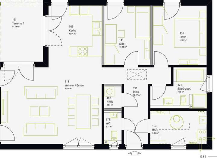 - hochdämmende Außenwand und 3-fach Wärmeschutzverglasung