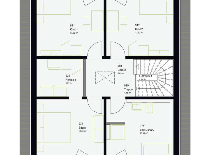 - Mehrraum durch hohen Kniestock im OG