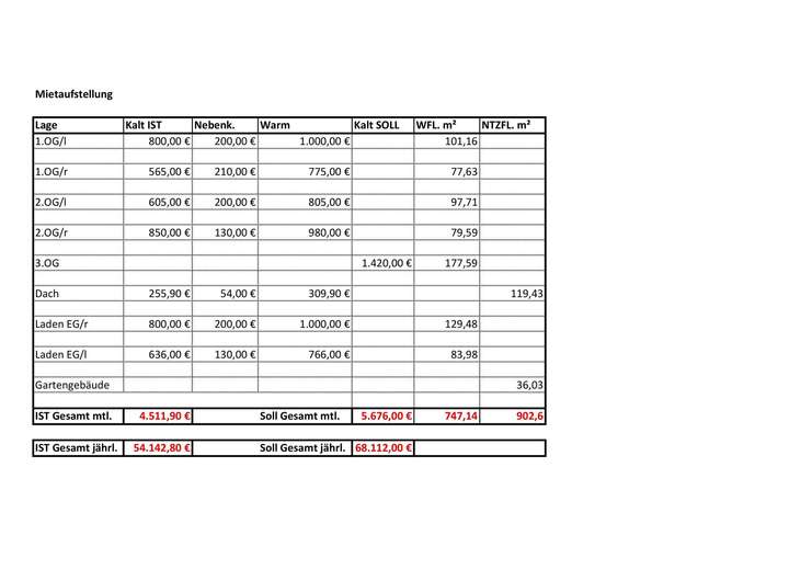 - Jährliche Ist-Mieteinnahmen: 54.142,80 €