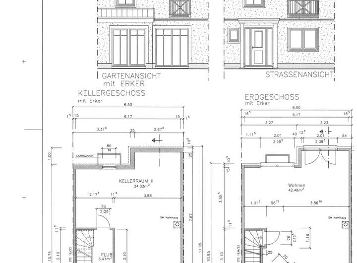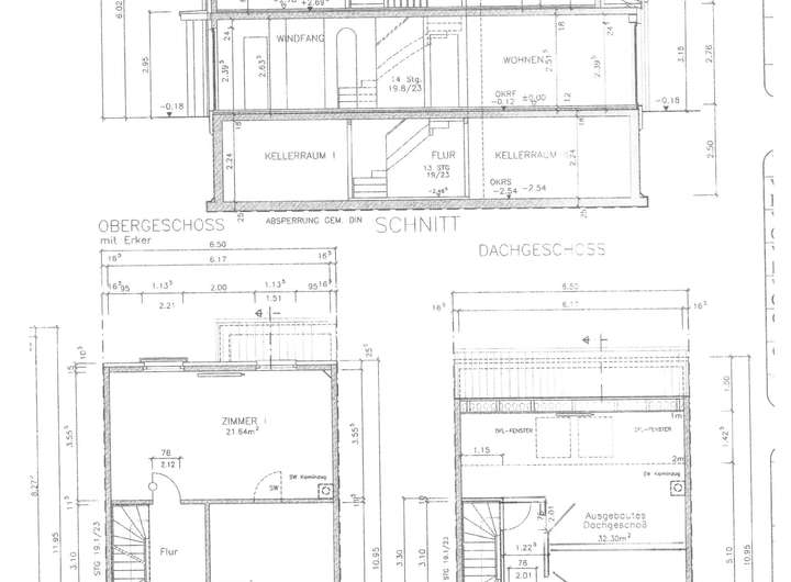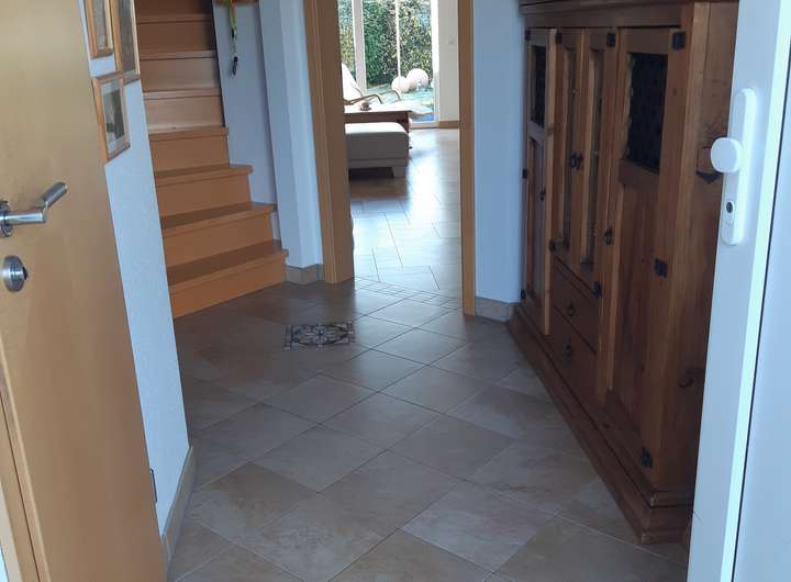 Erdgeschoss und Keller Fliesen, OG und DG Parkett.