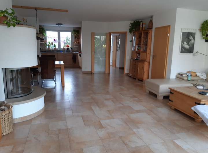 Sehr heller Wohn. -Essbereich mit 50 m² und großem Kamin.