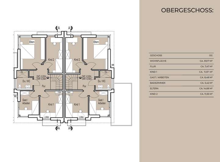 Die Doppelhaushälften verfügen über 6 großzügige Zimmer, darunter helle Wohn- und Schlafräume, 2 moderne Bäder sowie ein zusätzliches Gäste-WC. Die durchdachte Grundrissgestaltung ermöglicht komfortables Wohnen für Familien ebenso wie für anspruchsvolle Paare oder Homeoffice-Nutzer.
