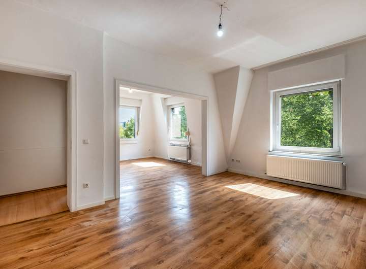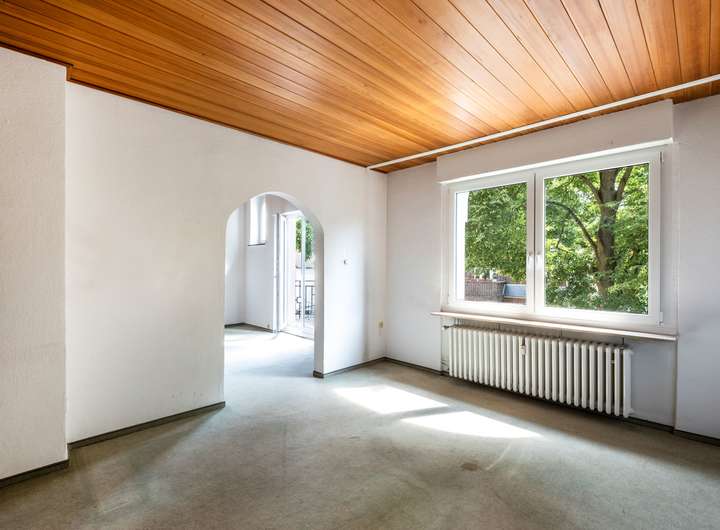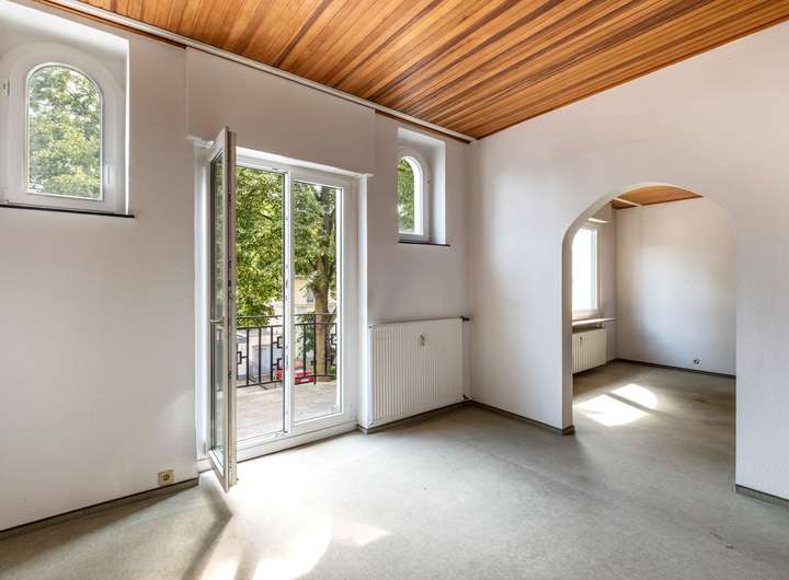 Drei nahezu identische Einheiten mit je rund 80 Quadratmetern Wohnfläche verteilen sich auf Hochparterre, erstes und zweites Obergeschoss. Der derzeitige Zustand verlangt Zuwendung – gleichzeitig eröffnet er maximale Freiheit zur eigenen Gestaltung. Böden, Küchen und Bäder warten darauf, neu gedacht zu werden. Nur das Bad im zweiten Obergeschoss wurde bereits modernisiert – als erster Schritt in die nächste Epoche.