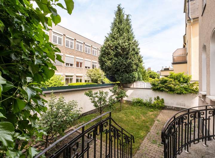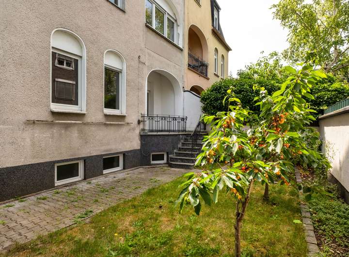 Das Hochparterre öffnet sich zur Terrasse mit Zugang zum ruhigen Stadtgarten, das erste Obergeschoss bietet einen Balkon zur Straßenseite. Der unausgebaute Dachboden birgt weiteres Potenzial, das darauf wartet, entdeckt zu werden. Der Keller, teils mit ehemaligem Büroraum, sowie ein eigener Stellplatz runden das Angebot ab.