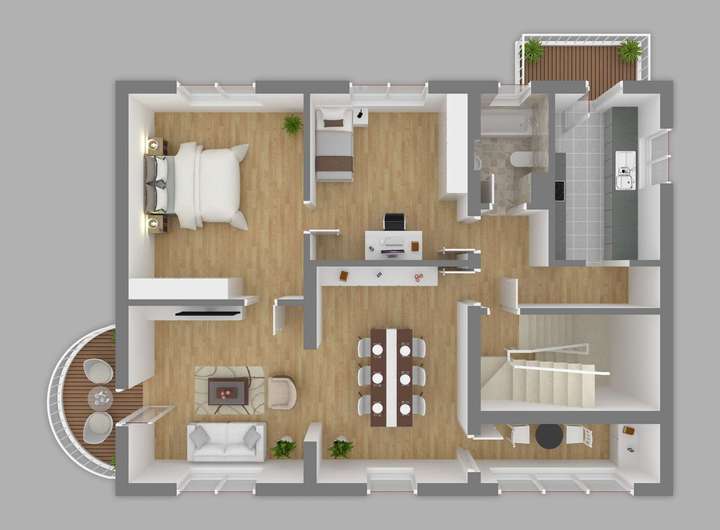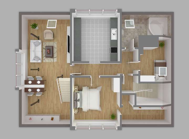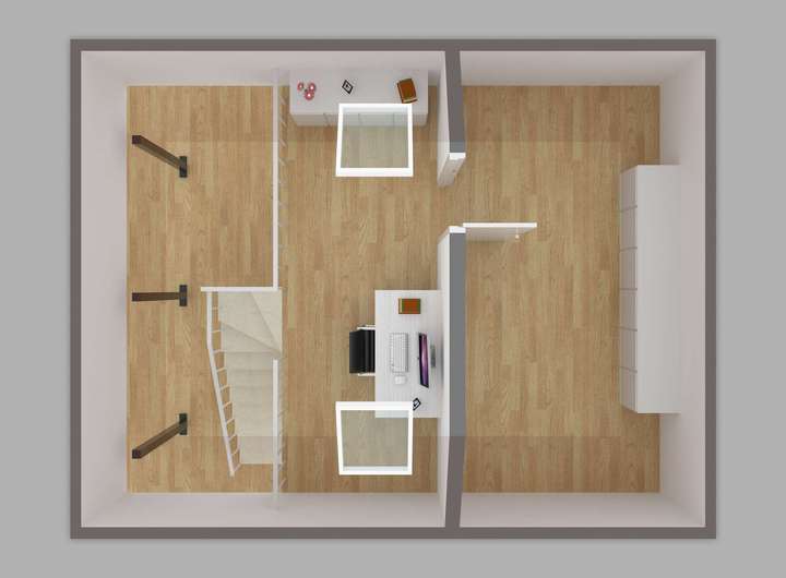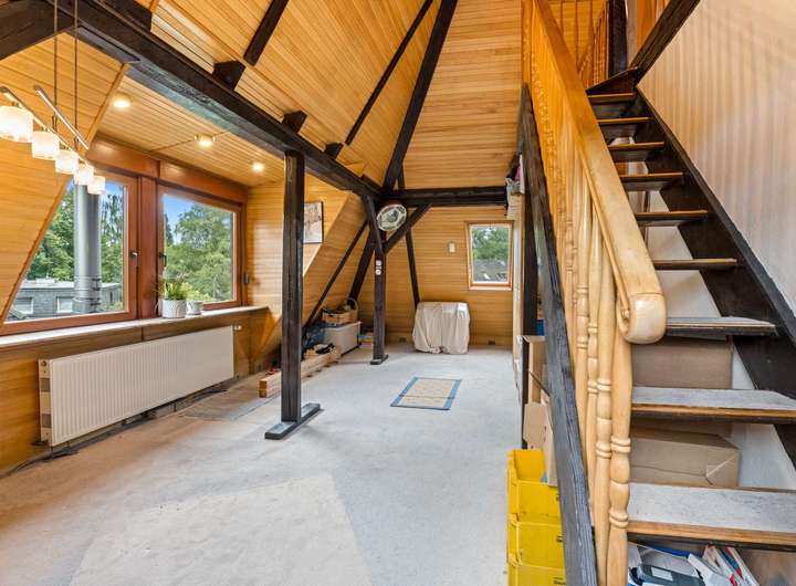 Auch das zweite Obergeschoss überzeugt mit einem großzügigen Wohn und Essbereich, einem separaten Schlafzimmer, einer Küche sowie einem kompakten Badezimmer. Über eine Treppe erreichen Sie den ausgebauten Spitzboden, der mit einem weiteren Raum zusätzlichen Platz und flexible Nutzungsmöglichkeiten eröffnet, etwa als Homeoffice, Gästezimmer oder für kreative Hobbys. Ein angrenzender Abstellraum bietet zudem praktische Staumöglichkeiten.