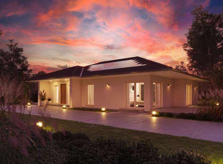 Lieferung und Aufstellung des Rohbaus mit Fenster und Außentüren auf bauseitiger Bodenplatte/Kellet, inkl. Statik, Bauantrag. Aufstellung erfolgt durch ein eigenes, erfahrenes und qualifiziertes Montageteam, inkl. Baustelleneinrichtung, Bautoilette ggfl. Gerüst. Dazu erhalten Sie unsere 18 Monate Festpreisgarantie. Das Haus ist nach der Übergabe des Rohbaus regendicht und wettergeschützt. In dieser Ausbaustufe werden Rollläden, Sanitär- und Elektroinstallation, Luft-Wasser-Wärmepumpe mit Fußbodenheizung, Beplankung der Decken und Dachschrägen, sowie schwimmender Estrich, Wand-Bodenfliesen in den Naßräumen, Duschwanne und Sanitärobjekte geliefert und fachgerecht montiert.