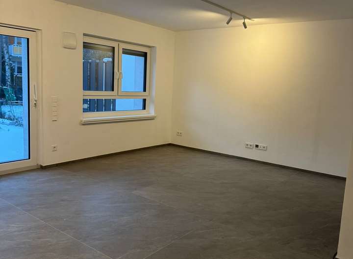 Der Wohnbereich bietet direkten Zugang zur Terrasse mit Gartenanteil, die zum Entspannen und Verweilen einlädt.