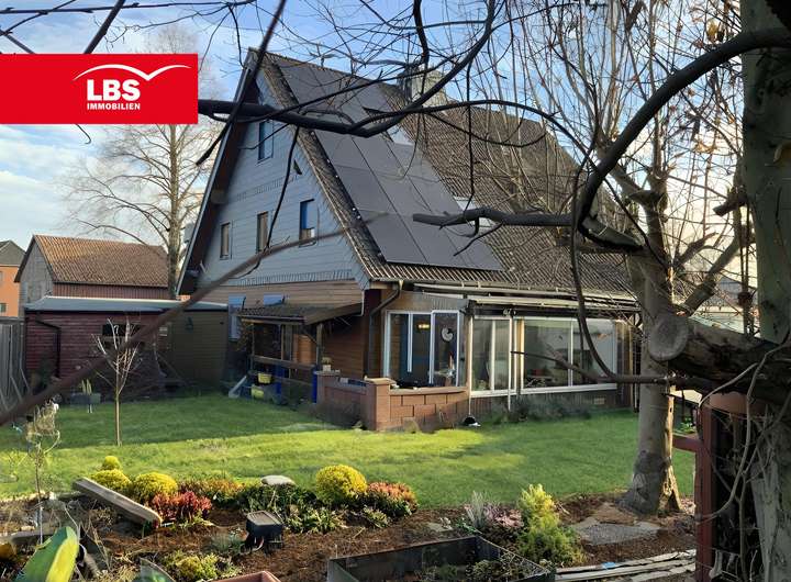 Das Doppelhaus in SZ-Ohlendorf wurde 2001 mit einer Wohnfläche von 120 m² erstellt. Das Erdgeschoss bietet eine große Wohnküche mit einem freistehenden Kochblock und einem Kamin, zwei kleinere Wohnräume sowie das Gäste-WC. Ein beheizter Wintergarten ist vorhanden. Im Obergeschoss befinden sich ein größerer Wohnraum, der zur zeit als Wohnzimmer genutzt wird, 2 Arbeits- oder Kinderzimmer sowie das Bad. Das Schlafzimmer mit einem begehbaren Schrank liegt im ausgebauten Spitzboden.