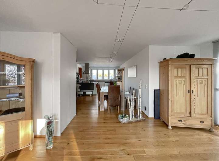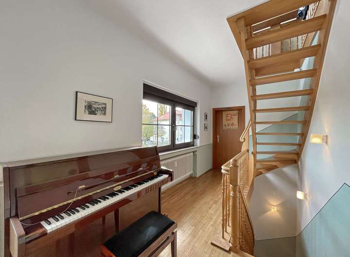 Abgerundet wird das Angebot durch eine beheizte Garage mit ca. 48 m², fünf Außenstellplätze, Hobbyräume im Untergeschoss sowie Kellerräumlichkeiten mit 2 m Deckenhöhe und einem zusätzlichen Sanitärraum.