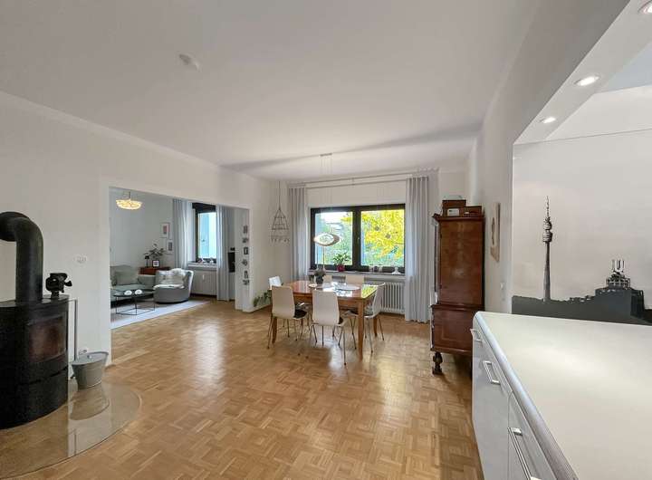 Dieses außergewöhnliche Anwesen vereint stilvolles Wohnen mit großzügigem Raum für unterschiedlichste Lebenskonzepte und attraktiver Rendite. Das Haupthaus wurde Anfang des 20. Jahrhunderts errichtet und fortlaufend instand gehalten. Im Jahr 2009 erfolgten eine umfassende energetische Sanierung sowie die Errichtung der Einliegerwohnung; 2015 wurde die Arztpraxis durch einen eingeschossigen Flachdachanbau erweitert. Heute umfasst das Anwesen drei Einheiten mit insgesamt rund 460 m² Wohn- und Nutzfläche: Haupthaus, Einliegerwohnung und Praxis-Bungalow.
