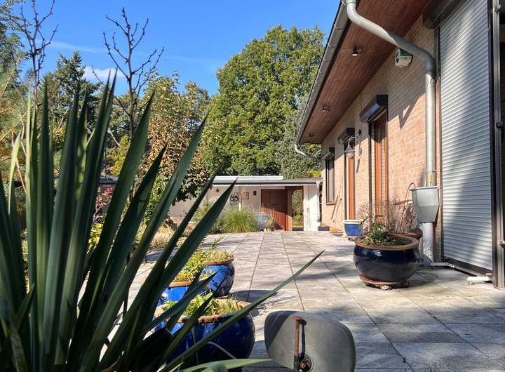 Im Außenbereich befinden sich 2 Garagen eine davon mit Grube für Kfz Arbeiten, eine weitere Doppelgarage mit innenliegender Werkstatt, ebenfalls mit Wc und Dusche ausgestattet, mehrere PKW-Stellplätze, auch ein Umbau zum eigenen Wendekreis wäre denkbar. Begleitet wird dieser schöne Parkplatz durch nette Gegebenheiten wie z.B. ein besonderer Ginkgo Baum.