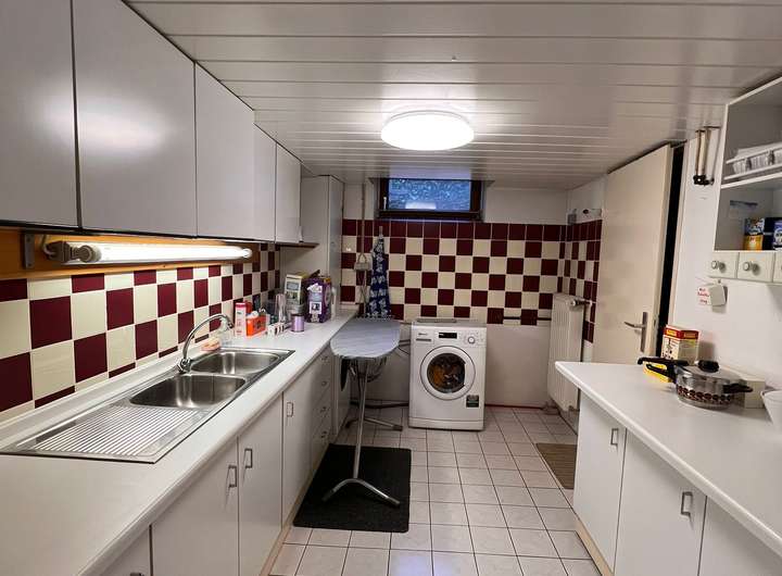 Desweiteren erwartet Sie ein geräumiger beheizbarer Keller, welcher ebenfalls mit einem Gästezimmer ausgestattet ist, mit Tageslicht, kleiner Küche und einem Badezimmer. Dieser Teil des Keller ist von außen zugänglich und gut geschützt.Er lässt sich vom übrigen Keller separieren oder gesondert vermieten. Es befinden sich Lagerräume, eine Waschküche und ein großer Partykeller samt Tresen und Stauräumen mit über 30 qm. Komplett trocken durch perfekte Ausführung und Instandhaltung.