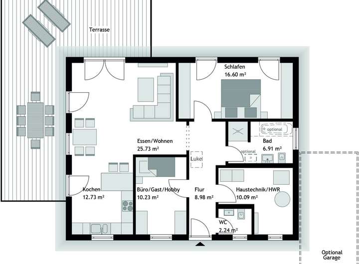 Tauchen Sie ein in die Welt des modernen Wohnens mit unserem projektierten Bungalow, der individuell nach Ihren Wünschen gestaltet wird. Auf einer großzügigen Wohnfläche von 93,51 m² verteilen sich geschmackvoll 3,0 Zimmer. Mit einem durchdachten Raumkonzept bietet dieser Bungalow auf einer Etage höchsten Komfort und Funktionalität. Ideal für Familien oder Paare, die ein Leben auf einer Ebene bevorzugen.