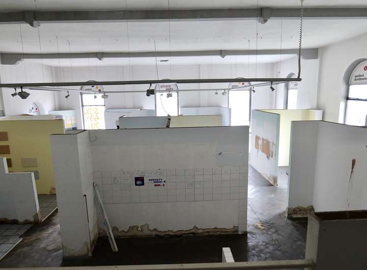 Dieses gut gelegene Wohn- und Gewerbegrundstück mit sanierungsbedürftigem Geschäftshaus bietet großes Potenzial für Investoren und Handwerker. Das Gebäude wurde ursprünglich als Gaststätte mit Saal genutzt und zuletzt als Küchenstudio betrieben.