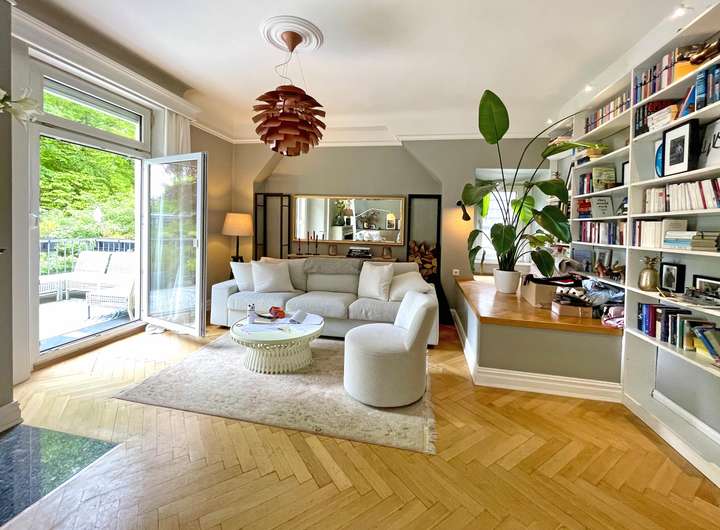 Bei gemeinsamer Nutzung beider Wohnungen entsteht ein außergewöhnlich großes und flexibles Zuhause mit insgesamt bis zu sechs Schlafzimmern, mehreren Wohn- und Esszimmern, großzügigen Außenbereichen sowie vielfältigen Nutzungsmöglichkeiten für Familie, Gäste oder Homeoffice. Die Kombination aus historischer Architektur, hochwertiger Ausstattung und einer der besten Adressen Hamburgs macht diese Stadtvilla zu einem ausgesprochen attraktiven Angebot für anspruchsvolle Käufer, die Wert auf Stil, Raum und besondere Wohnqualität legen.