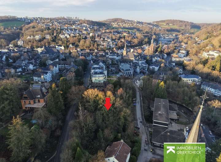 Dieses Grundstück befindet sich in Velbert Langenberg, etwa 6 Kilometer nordöstlich der Innenstadt. Für viele ist Langenberg das schönste Dorf von Velbert. Überregional bekannt ist der Ortsteil durch den WDR-Sender Langenberg und seinen pittoresken, historischen Ortskern. Und genau hier, am Rande der Altstadt, befindet sich dieses besondere Grundstück, umgeben von schicken Jugendstilvillen.