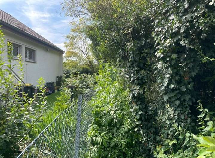 Auf der rechten Grundstücksseite steht ein Einfamilienhaus – ideal für Eigennutzer mit Platzbedarf, Mehrgenerationenwohnen oder als attraktive Investitionsmöglichkeit.
