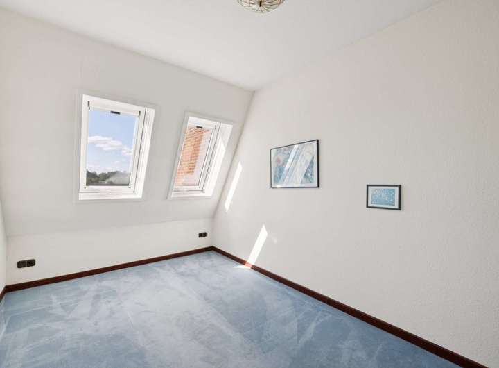 Hier befinden sich gemütliche Schlafzimmer mit ca. 10 und 12 m² Wohnfläche, jeweils ausgestattet mit zwei Dachflächenfenstern für angenehmes Tageslicht. Ergänzt wird das Obergeschoss durch ein weiteres Duschbad sowie eine ca. 14 m² große Ausbaureserve, die derzeit als Stauraum genutzt wird – ideal für zukünftige Wohnwünsche.
