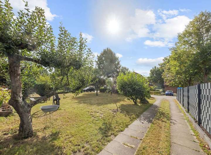 Das Grundstück besticht durch seinen alten Baumbestand, der ihm eine besondere Ausstrahlung und Natürlichkeit verleiht. Ergänzt wird dies durch einen großzügigen Gartenbereich mit Obstbäumen, der viel Platz für Erholung, Familienleben und individuelle Gartengestaltung bietet.