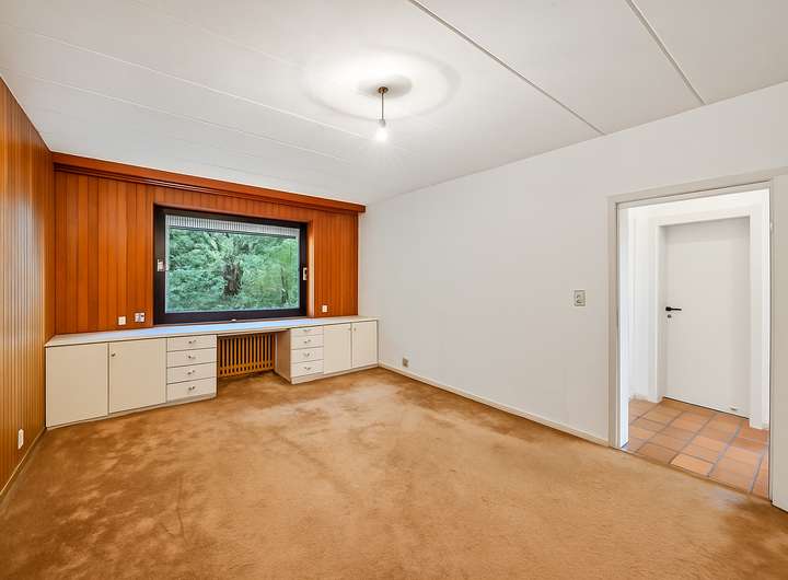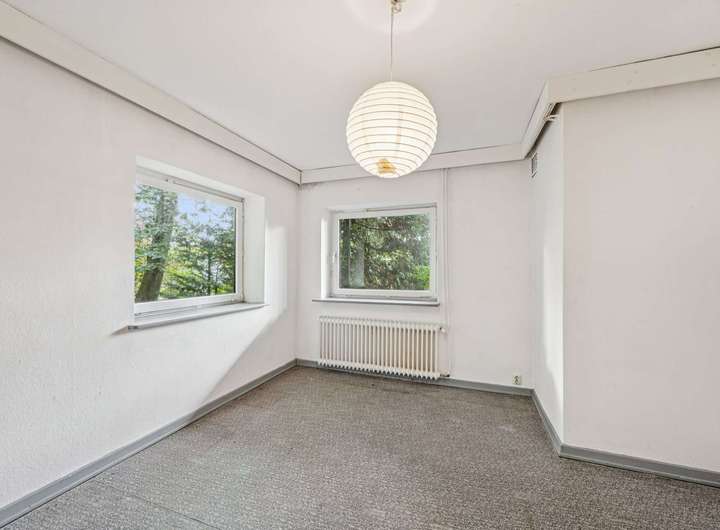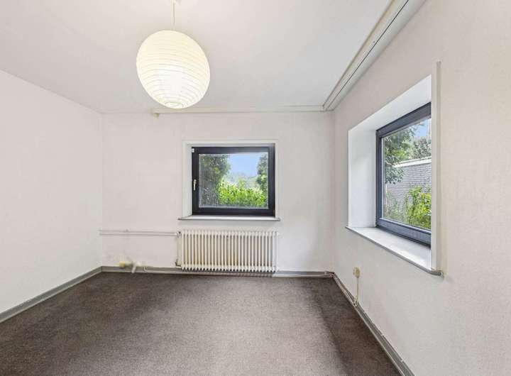 In das Untergeschoss können Sie sowohl direkt vom Erdgeschoss als auch über einen separaten Hauseingang gelangen. Die Einliegerwohnung lässt sich ideal für Gäste oder als Büro nutzen. Sie bietet zwei ca. 16 m² große Wohnräume und ein Tageslicht-Duschbad. Bei Bedarf besteht die Möglichkeit, eine Küche nach eigenen Vorstellungen in der Waschküche einzurichten.