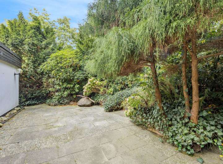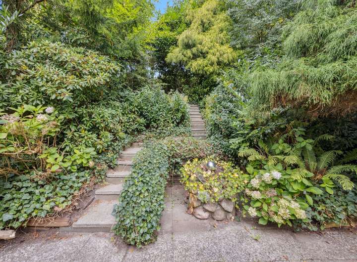 Das Haus verfügt im hinteren Gartenbereich über eine große Terrasse sowie eine weitere, kleinere Terrasse, die über einige Treppen erreichbar ist – ideal für Sonnenliebhaber oder ruhige Stunden im Grünen.