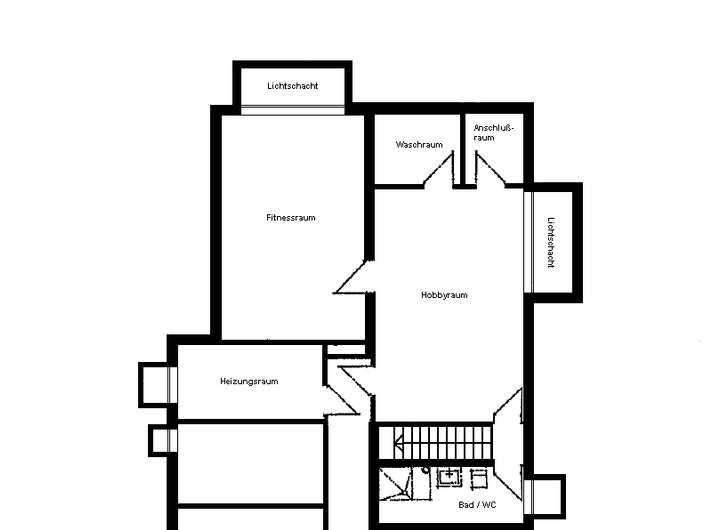 Über die Treppe erreichen Sie die zweite Ebene im unteren Geschoss. Hier erwarten Sie zwei größere Räume, welche man vielfältig zum Beispiel als Hobbyraum oder Fitnessraum nutzen kann.