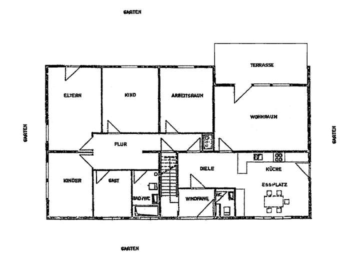 Das Haus bietet viel Raum für individuelle Gestaltungs- und Aufteilungsmöglichkeiten. Sobald man hereintritt, besticht der großzügige Essbereich mit einer hochwertigen neu ausgestatteten Einbauküche mit E-Geräten. Gleich nebenan finden Sie den Wohnbereich mit Zugang zur Sonnenterrasse und dem über 300 qm großen Garten.