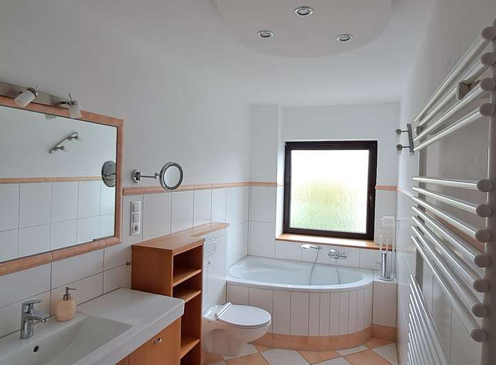 5 helle Zimmer, 2 Badezimmer, sowie 1 Gäste-WC.