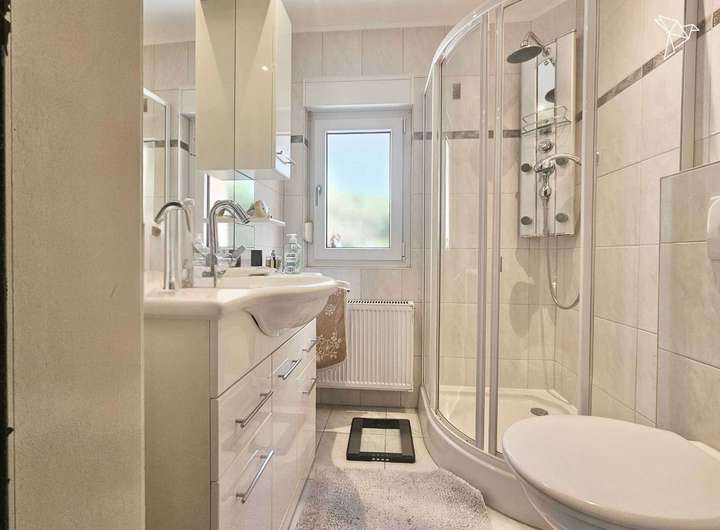 Im Obergeschoss erwarten Sie weitere gut geschnittene Räume, die sich als Schlafzimmer, Kinderzimmer oder Homeoffice nutzen lassen. Ein Balkon bietet einen schönen Blick in die grüne Umgebung – ideal, um den Tag mit einem Glas Wein entspannt ausklingen zu lassen. Die Klimaanlagen im Wohnzimmer und im Kinderzimmer ermöglichen zusätzlichen Komfort.