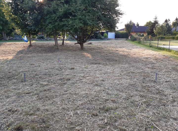 Ein Bauantrag für einen Bungalow (für Urlaubszwecke) war bereits genehmigt, wurde aber aus persönlichen Gründen nicht umgesetzt. Die Fotos stammen aus dem Jahr 2021, als das Grundstück frisch gerodet wurde – seither wurde es nicht weiter gepflegt. Nachträglich wurden noch die Bäume entfernt.