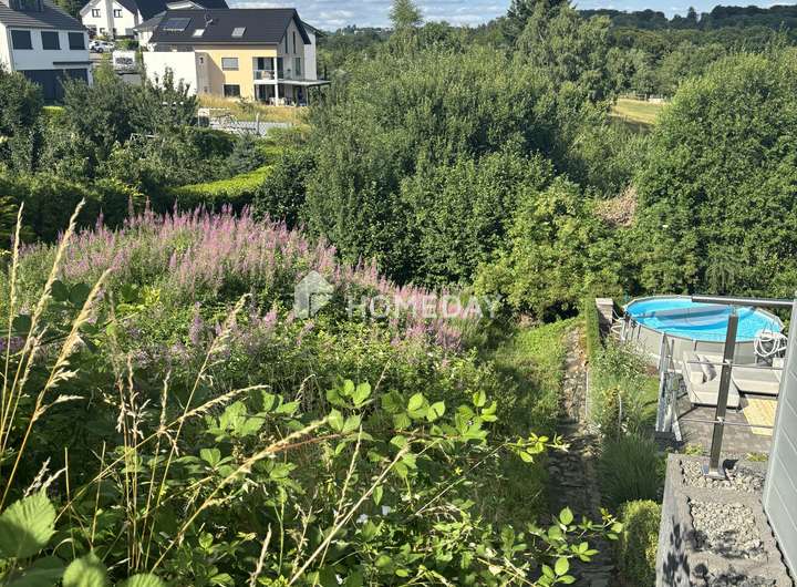 Die Freizeitmöglichkeiten in der Umgebung sind besonders attraktiv. Direkt am Wohngebiet grenzen weitläufige Wald- und Naturflächen mit zahlreichen Spazier- und Wanderwegen an. Die Lage im Bergischen Land bietet eine abwechslungsreiche Landschaft mit sanften Hügeln, Wäldern und kleinen Bachtälern. In der weiteren Umgebung lädt die Große Dhünntalsperre – in nur etwa 15 Autominuten erreichbar – zu ausgedehnten Spaziergängen, Fahrradtouren oder Naturbeobachtungen ein. Kleine Bachläufe durchziehen das Umfeld und sorgen für zusätzliche landschaftliche Reize.