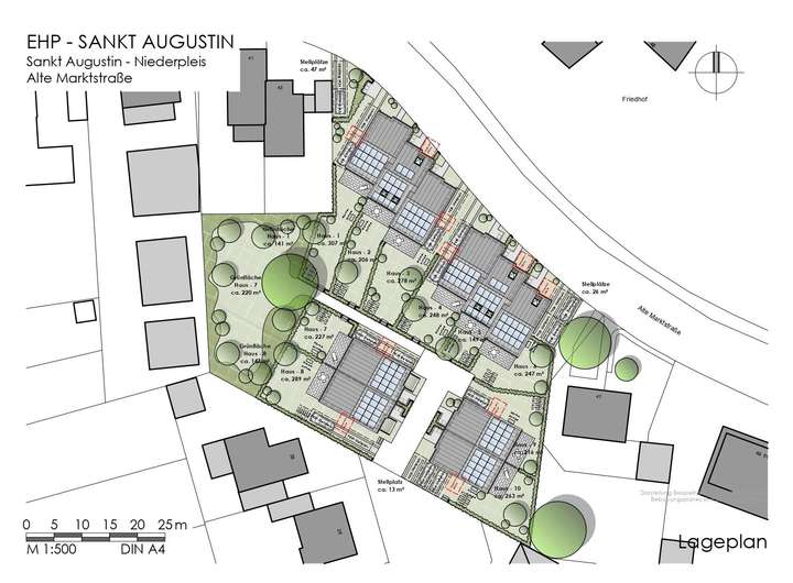 Die Grundstücksgrößen bewegen sich dabei zwischen ca. 175 bis 448 m².