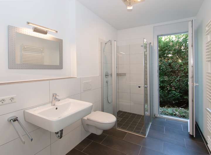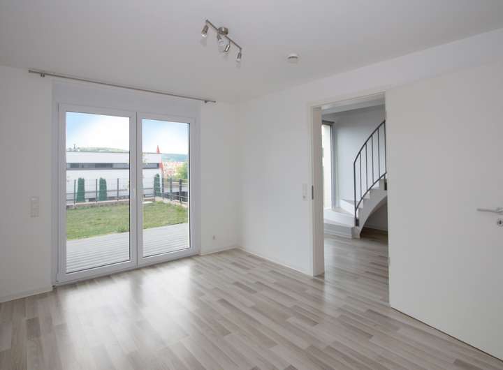 Das EG gliedert sich in den gemütlichen Wohn- und Essbereich, mit einer modernen offenen Einbauküche und einem Tageslichtbad. Von dort gibt es einen direkten Zugang auf die sicht- und windgeschützte Frühstücksterrasse.