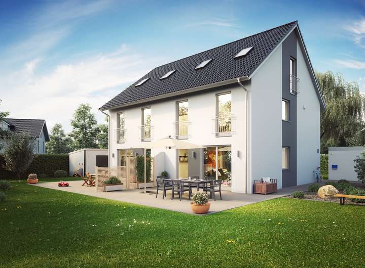 Wichtig: Das Projekt mit einem Doppelhaus (DHH1 und DHH2) wurde bereits schlüsselfertig von uns kalkuliert und wird direkt von der Wand-Massivhaus GmbH als Generalunternehmer umgesetzt.