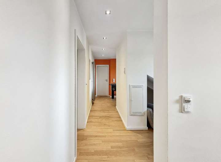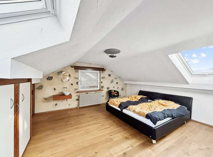 Das 2. Obergeschoss wurde umfassend modernisiert und ausgebaut. Hier entstanden durch einen Dachausbau mit Gauben auf der einen Seite sowie einen weiteren Ausbau auf der gegenüberliegenden Seite zwei helle Zimmer und ein Badezimmer. Anschlüsse für eine Küche sind bereits vorhanden, sodass diese Ebene problemlos als vollwertige Wohnung genutzt werden kann.